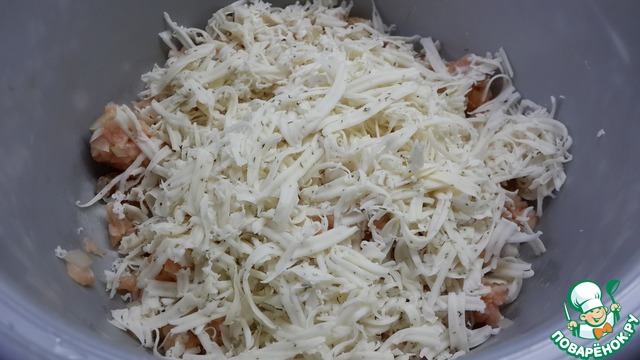А во "взрослую"часть я натёрла сыр смесь перцев (он острый), перемешать, и сюда добавить 2-3 ложки сухого пюре или панировочных сухарей и опять перемешать.