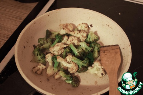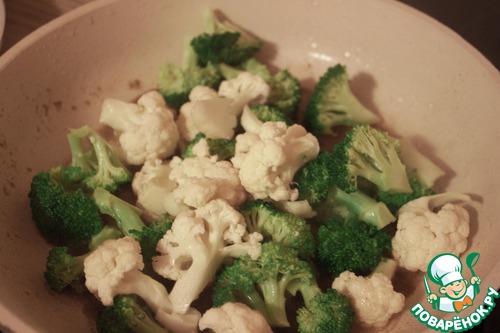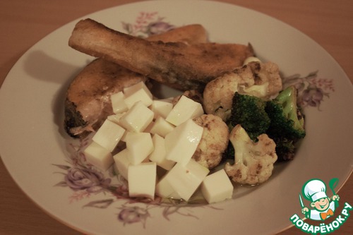 Семга, капуста цветная, брокколи, брынза, лимон... соль перец мука и оливковое масло. Все вроде перечислил.