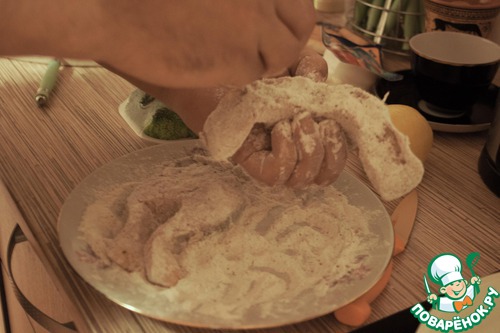 Соль перец муку смешиваем в тарелке