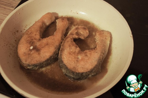Обжариваем примерно по три - четыре минуты с каждой стороны. И пока рыба жарится занимаемся капустой.