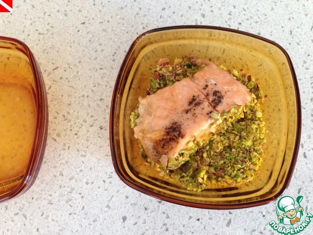 | Рецепт этого блюда я подглядела в маленьком итальянском ресторанчике на берегу моря. Нежная рыбка подавалась со средиземноморским салатом, а фисташки придавали ей особую новую нотку. Вот и уменя дошли руки сотворить это чудо дома. |