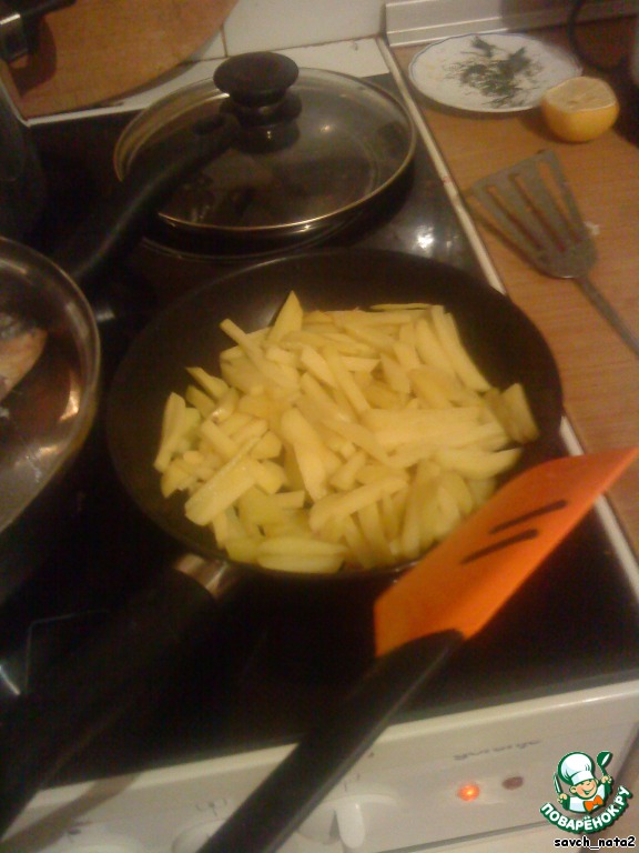 Карася маринуем на 2 -3 часа в маринаде со сметаной и специями. На сковороде обжариваем картофель до полуготовности. Карася обжариваем в сотейнике, переворачиваем и добавляем картофель. картофель посыпаем его тертым сыром, закрываем сотейник крышкой. После срабатывания системы, 7 минут томим на плите.