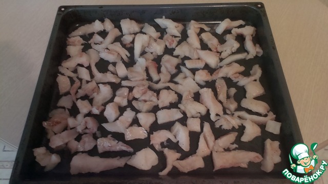Полить рыбным бульоном так, чтобы вся мука была смочена. После этого сверху посыпать толчёными или панировочными сухарями, полить растительным маслом ТМ "Олейна" и запекать в духовке при 180 градусах 20-25 минут. Бульон я варила из голов рыбы, а филе брала минтая замороженного.