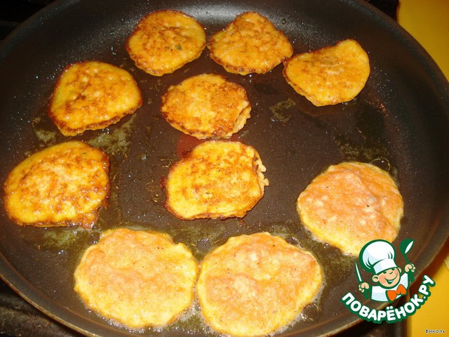 Выкладываем ложкой блинчики и обжариваем с двух сторон до готовности.