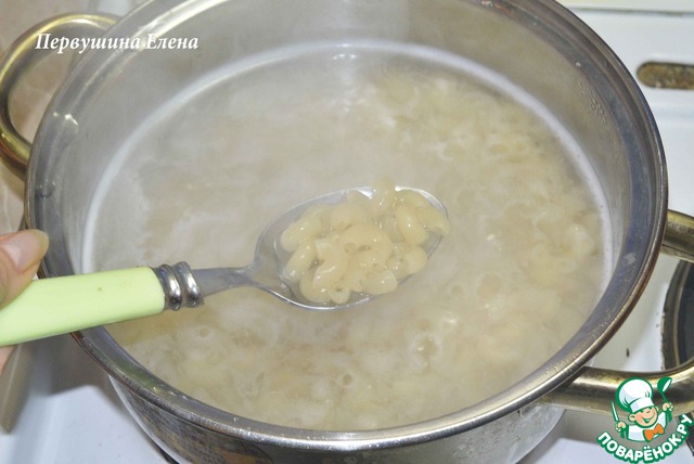 Тем временем отварить макароны. В качестве гарнира подходит все: и макароны, и рис, и картофель...