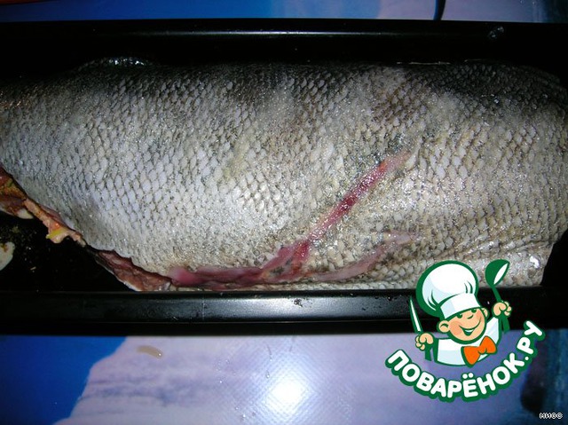 Рыбу чистим, у меня оставался кусок кеты. Разрезаем вдоль хребта пополам.