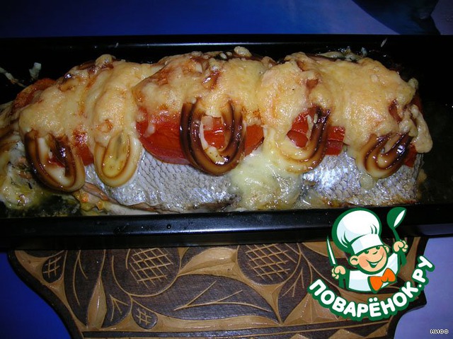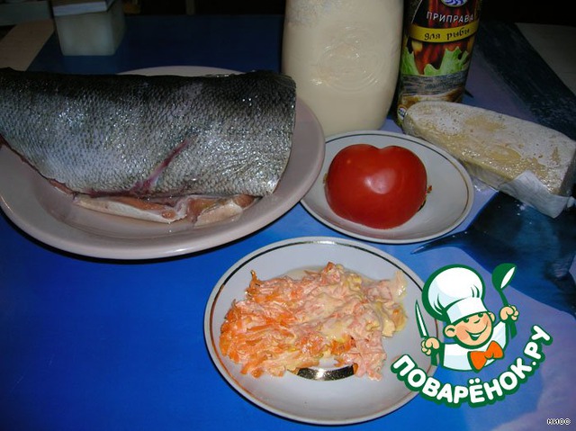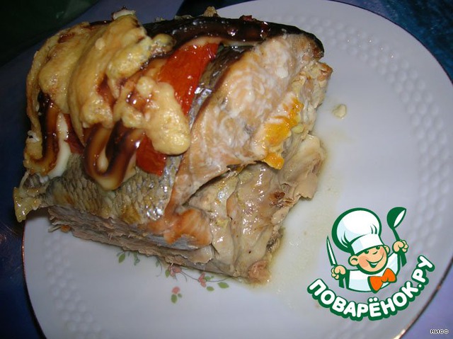 | Это блюдо из разряда утилизации продуктов накопившихся в холодильнике. Оставалась морковка с чесноком и майонезом, кусок кеты, застарелый кусок сыра и полпомидорки. Получилась такая необычная, сочная, нежная вкуснятина. |