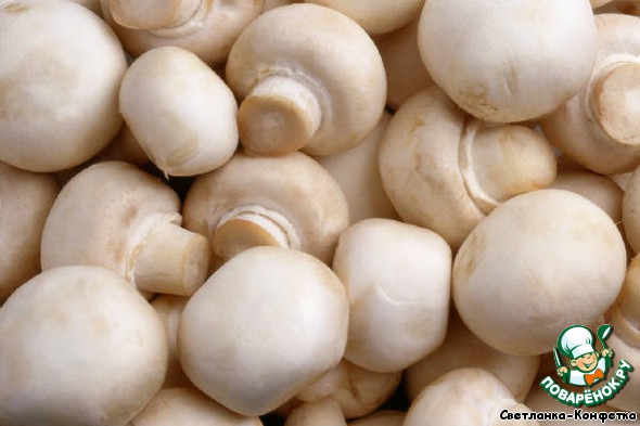 Берем шампиньоны. Моем в холодной воде с мукой, чтобы они стали беленькие и чистые.Потом берем сковороду наливаем небольшое количество масла и кладем шампиньоны, тушим, добавляем вино и доводим до готовности. Остужаем.