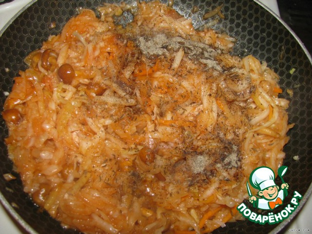 Добавляем опята. Мама моя и бабушка делали без грибов, но с ними вкуснее!!!