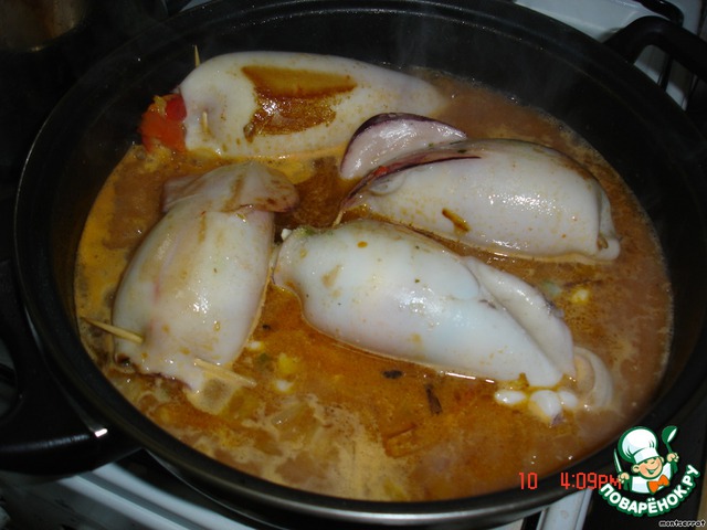 | Кальмары хороши тем, что их можно готовить всегда по-новому и получать неплохой результат, а если кальмары свежие, а начинка оригинальная-даже отличный результат. |