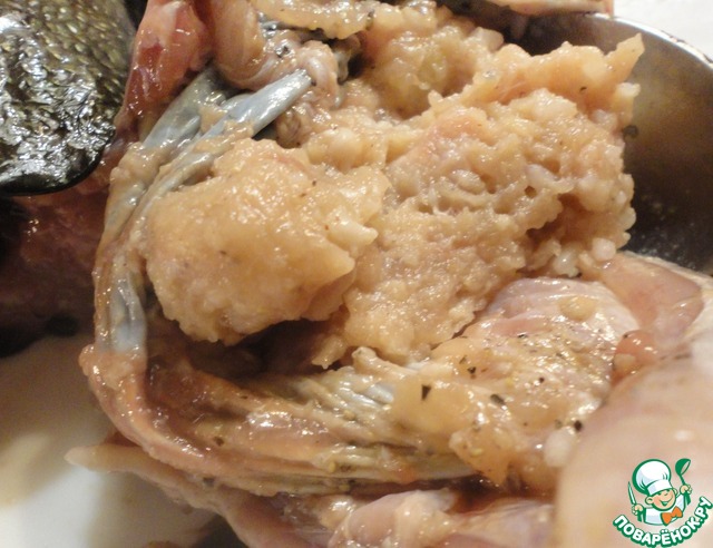 Кожу изнутри немного солим, перчим и натираем лимонным соком. Это нужно для того, чтобы мясо, оставшееся на коже не получилось пресным.