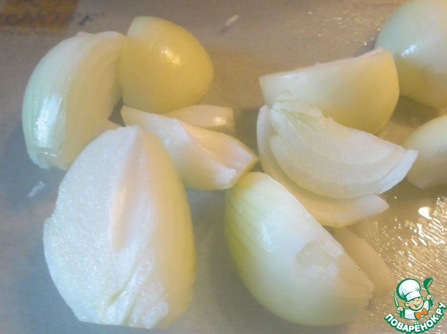 Лук чистим, режем кусочками, подходящими для мясорубки..