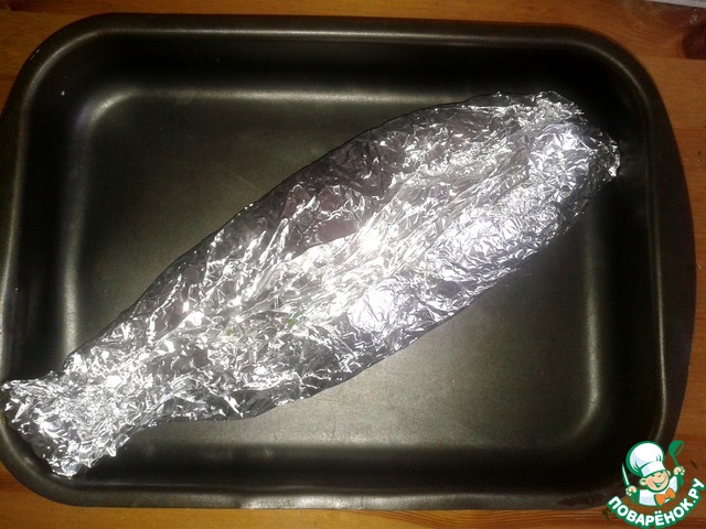 Плотно укутываем в фольгу, и запекаем в духовке при температуре 180 градусов (ориентируйтесь по своей духовке, на моей нет цифрового табло - всё на ощупь..)