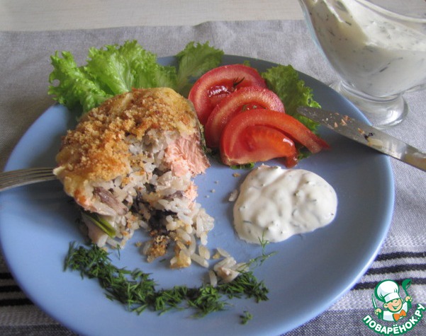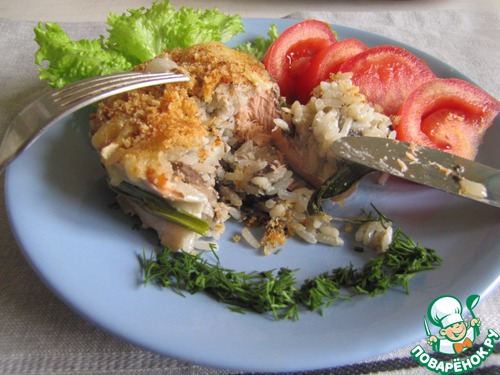 Медальоны из лосося с рисом и грибами
