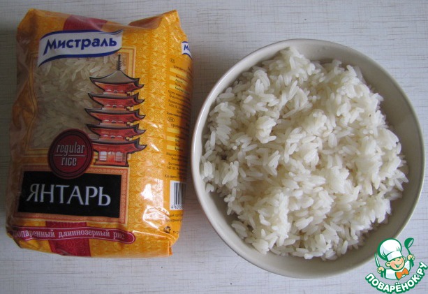 Рис отварить. Я использовала длиннозерный пропаренный рис тм "Мистраль".