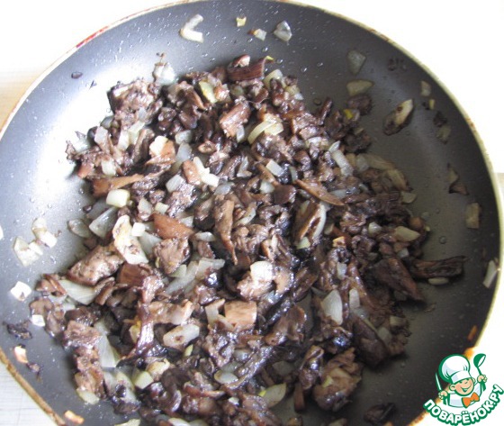 Лук репчатый и грибы измельчить и обжарить на растительном масле.