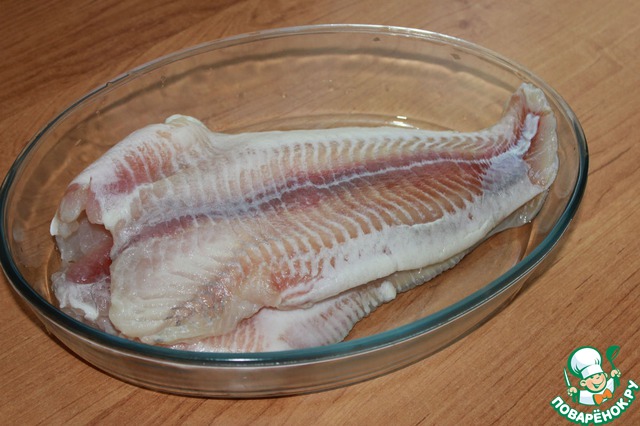 Филе белой рыбы сполоснуть и обсушить бумажным полотенцем.