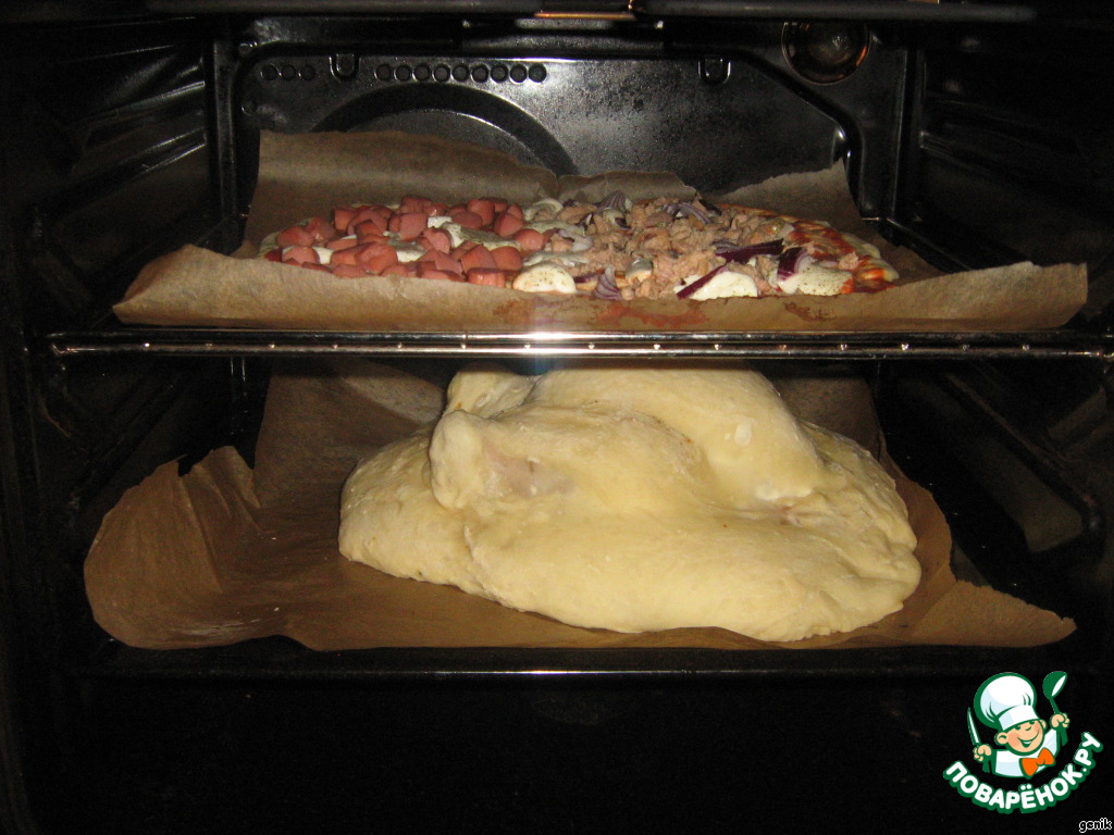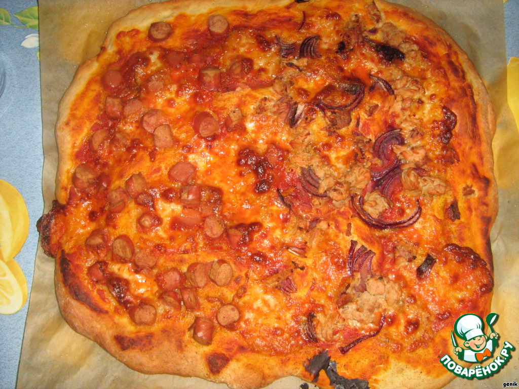 Не забываем вынуть из холодильника за часик до приготовления! Такое тесто очень подходит и для приготовления тонких пицц, они получаются легкие и слегка хрустящие.