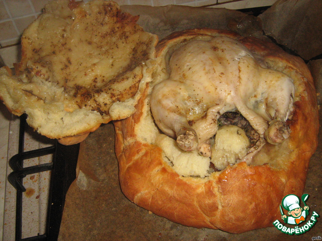 | Нежная курочка, запеченная в тесте. Вкусно!!! Совмещаем второе и хлеб. Кстати, рецепт теста прекрасно подойдет и для пиццы! |
