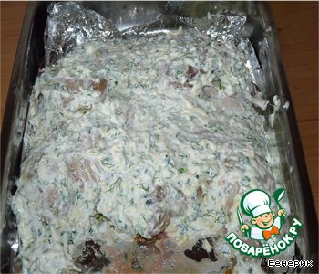 Смешать сметану, натёртый сыр, нарезанную зелень. (забыла сфотографировать эту смесь).