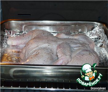 Духовку нагреть до 180 гр., и отправить курицу в духовку на 30 минут.