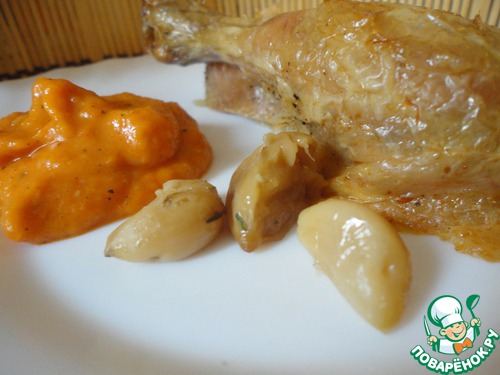 Чеснок из курочки сладкий и пропитаный ароматами трав и курицы.
