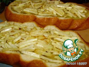 | Фаршированный батон различными вкусностями, которые, дополняя друг друга, делают вкус блюда незабываемым!!! А корочка батона в свою очередь, пропитывается всеми соками и приобретает хрустящую, ароматную корочку…ммм… это очень вкусно! Это блюдо подойдет как на праздничный стол, так и на повседневный. Порадуйте себя и своих любимых, все будут довольны!!! |