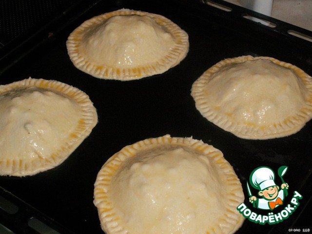 Накрыть тесто с начинкой другой половинкой, края прижать вилкой.