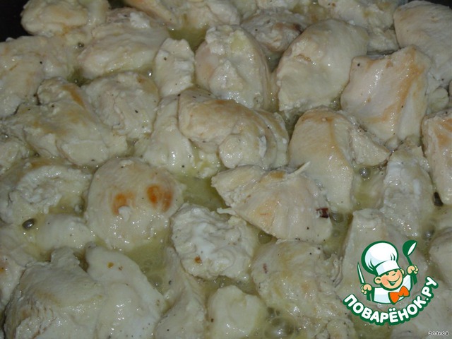 и обжариваем на сливочном масле. Обжаренную курятину складываем в кастрюлю.