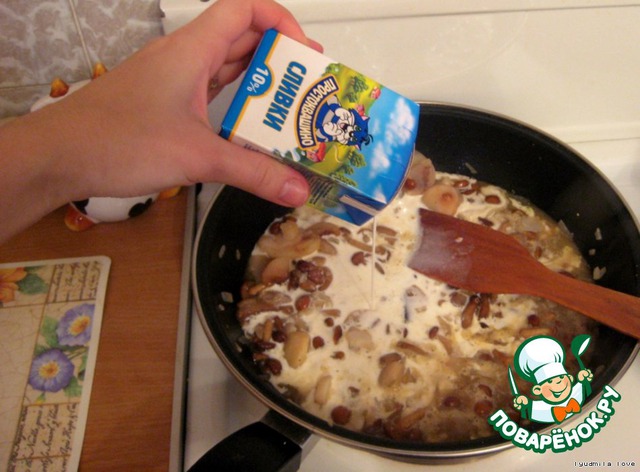 Добавляем сливки и тушим минут 5-7.