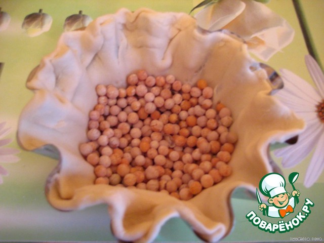 Достаём из духовки и убираем горох.