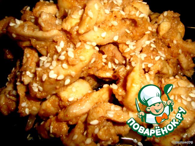 Куриная поджарка в яблочно-медовом маринаде