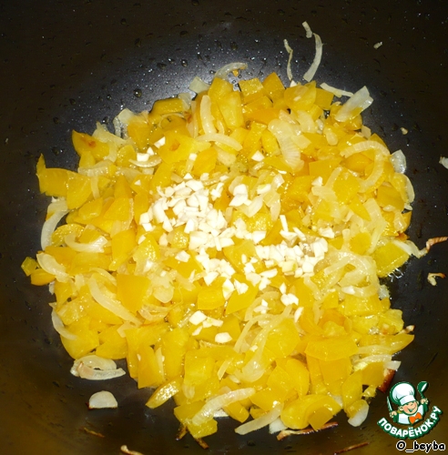 Добавить мелко порубленный чеснок. И обжарить ещё немного.