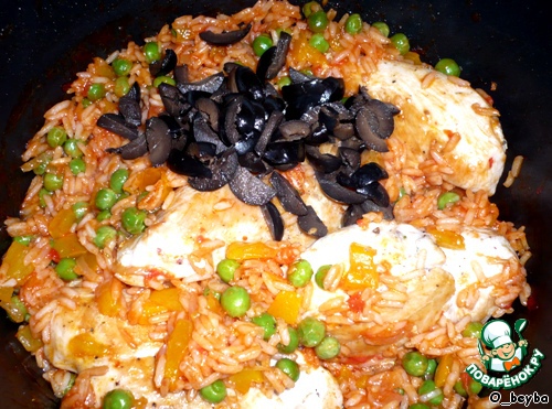 В конце добавить нарезанные маслины(можно и без них), накрыть крышкой и снять с огня. Пусть постоит минут 20.