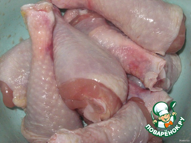 Получившимся соусом ,обмазать куриные голени и оставить на 15-20 минут в холодном месте.