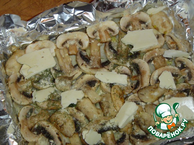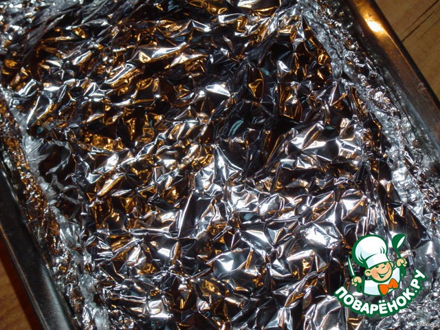 Накрываем все фольгой и отправляем в духовку,разогретую до 200 гр. и оставляем на 20-25 мин.