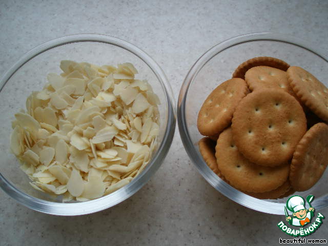 Для панировки возьмем крекер и миндальные лепестки.