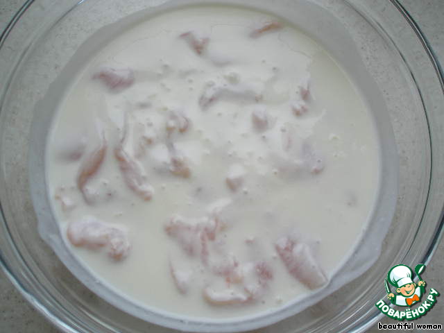 Выкладываем филе в емкость с кефиром.
