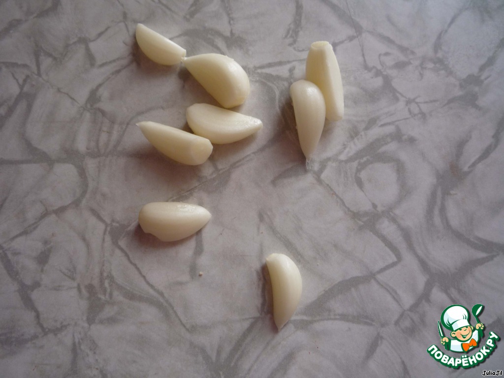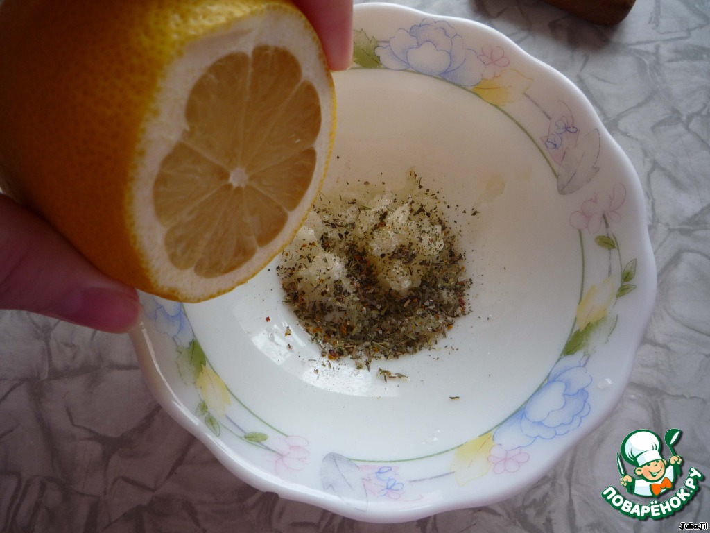В тарелочке смешаем измельчённый чеснок, соль, перец, сок лимона и 2-4 ст.л. подсолнечного масла. Перемешиваем тщательно.