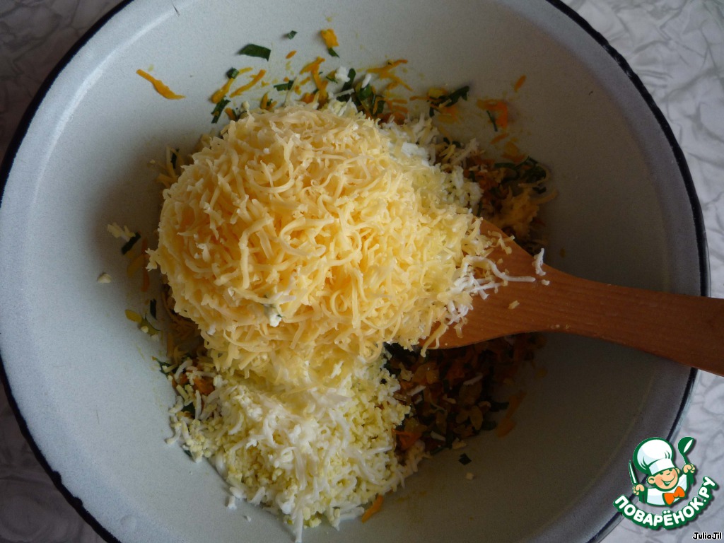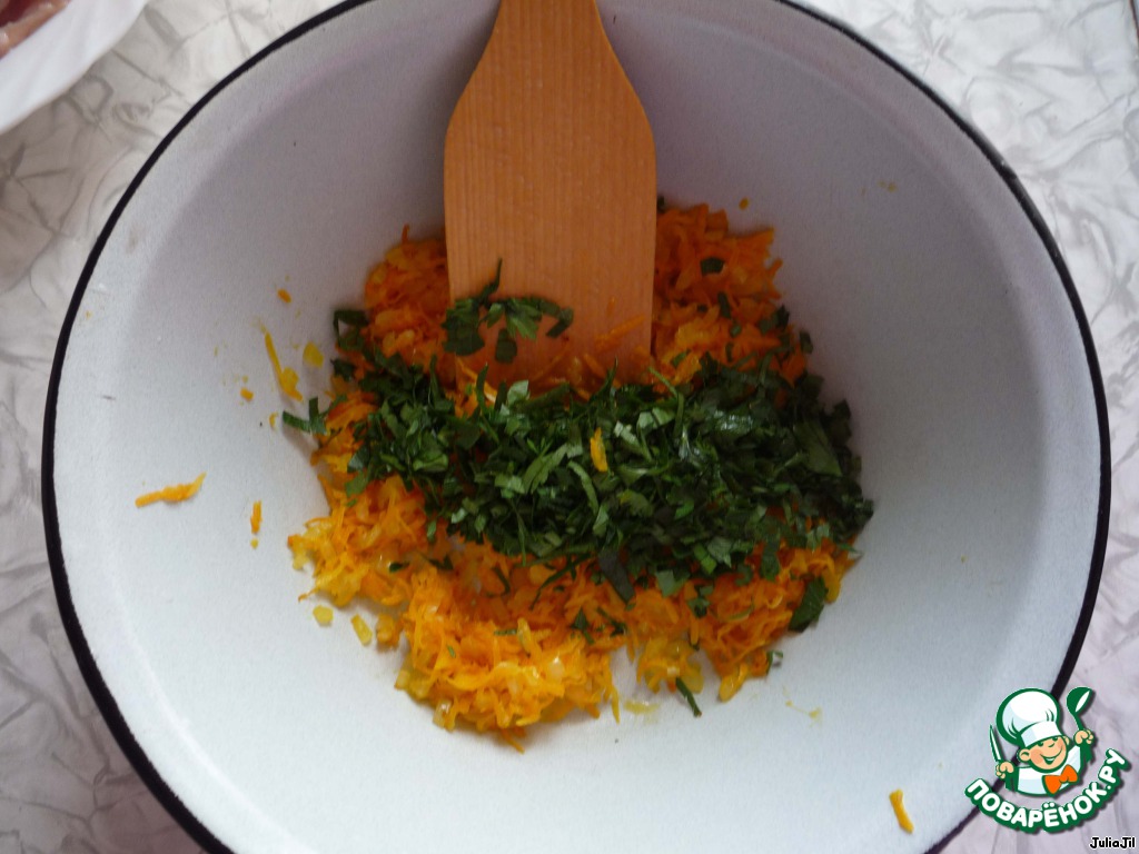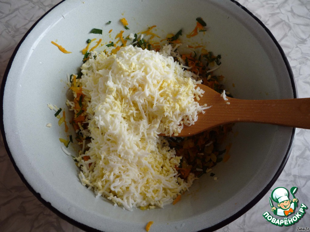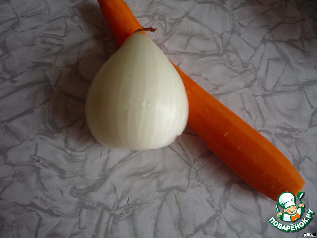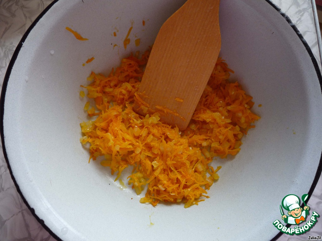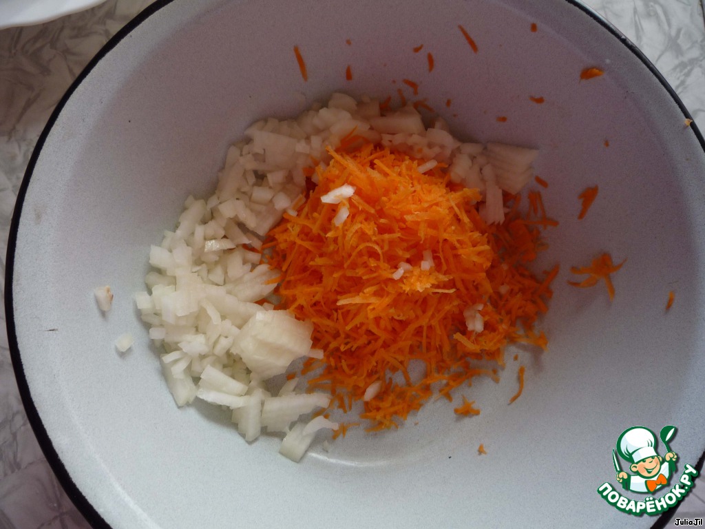 Мелко нарезаем лук и трём на мелкой тёрке морковь.