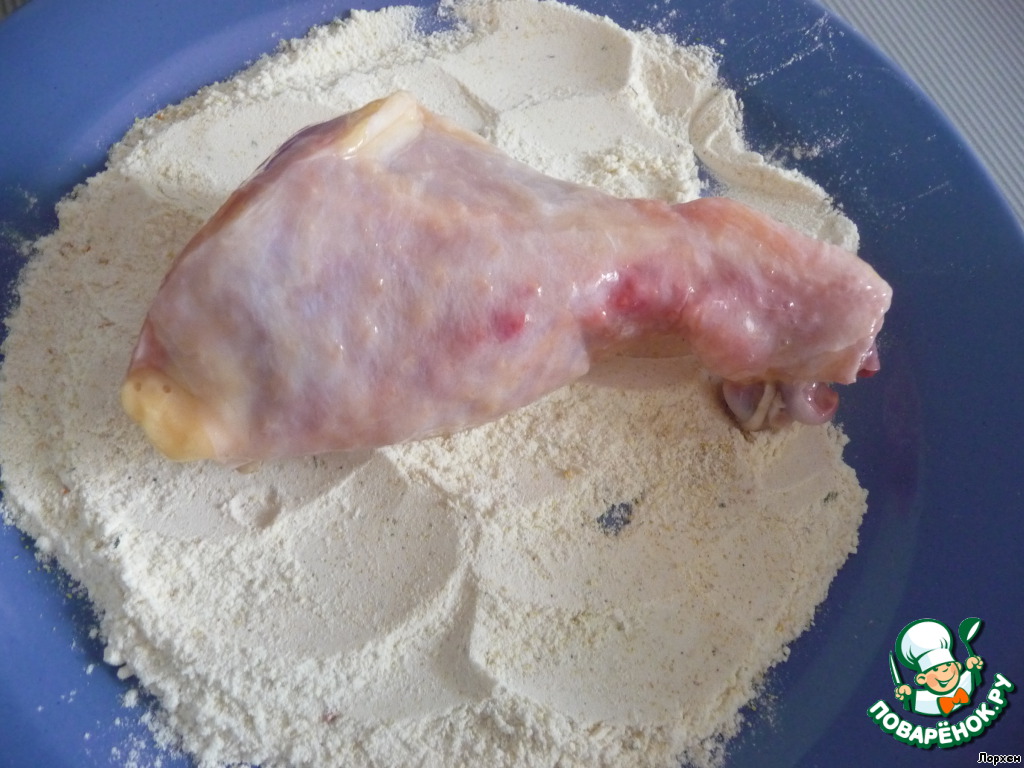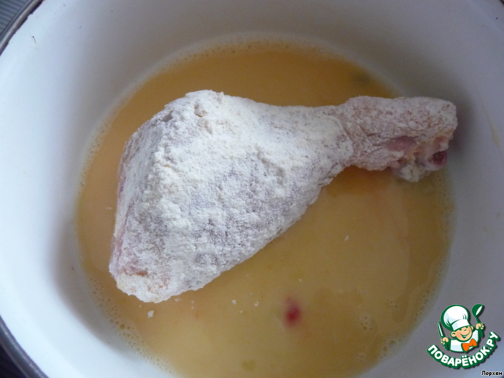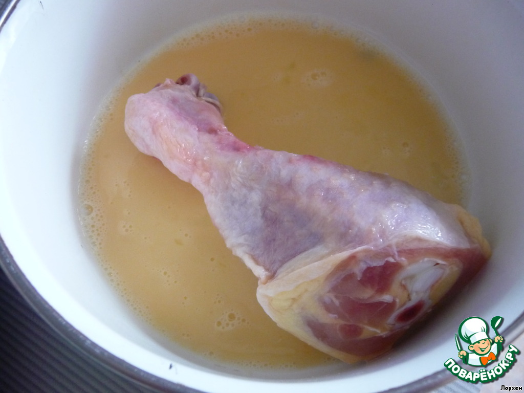 3. Яйца взбиваем венчиком. Каждую голень обмакиваем сначала в яичную смесь,