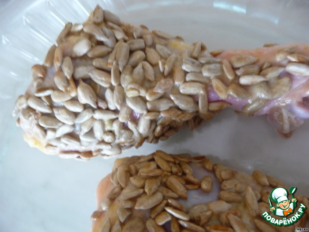 6. а потом обваливаем в семечках подсолнуха со всех сторон.