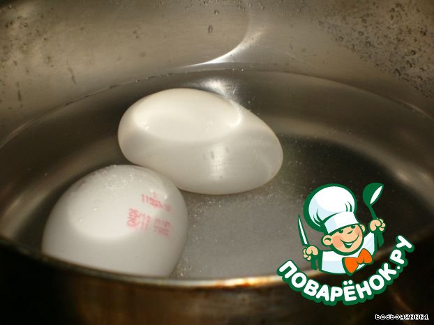 Яйца отварить вкрутую и дать остыть