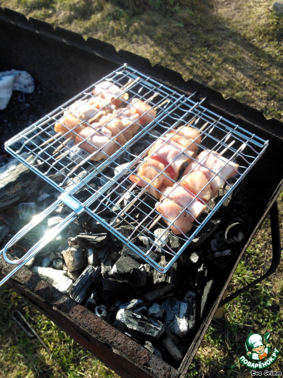 Жарим шашлычки с 2-х сторон, выкладывая на решетку