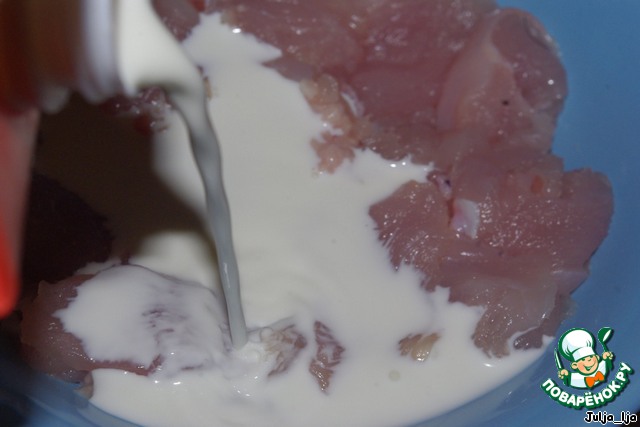 И залила его сливками (разделив их на две части, но оставив при этом 3 ст. ложки для взбивания паштета). Затянула пищевой плёнкой и оставила в холодильнике на сутки, чтобы филе стало нежным-нежным.