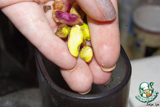 При подаче посыпаем рулет оставшимися измельчёнными фисташками и украшаем зеленью.