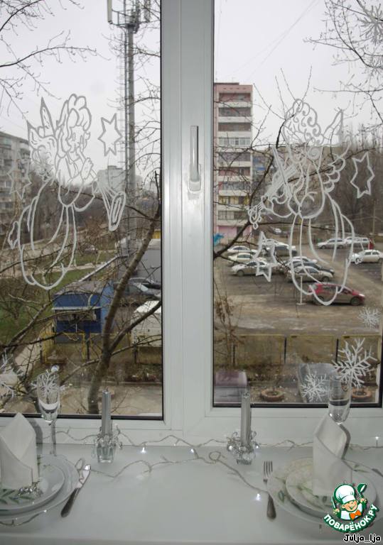 Накрываем на стол. В нашем случае это окно. Ставим красивые тарелки, свечи. И пусть пейзаж за окном серый и скучный, скоро настанет вечер, и начнётся СКАЗКА.