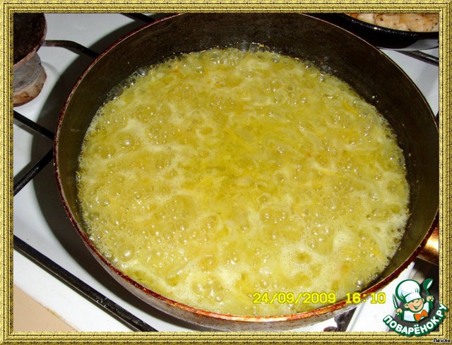 Добавить мед, лимонный сок, и куриный бульон и на большом огне дать закипеть