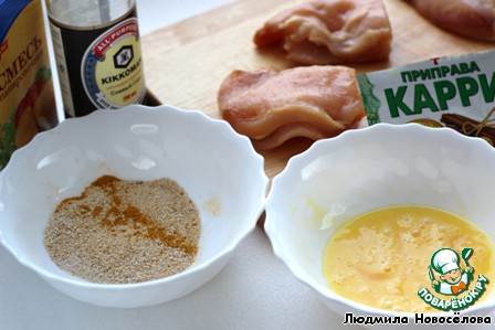 Панировочные сухари смешать с карри. Куриное мясо и карри созданы друг для друга.