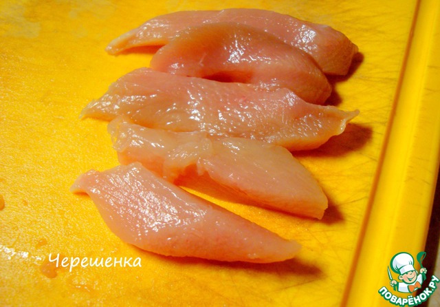 Нарезать филе полосками 8*1*1см…